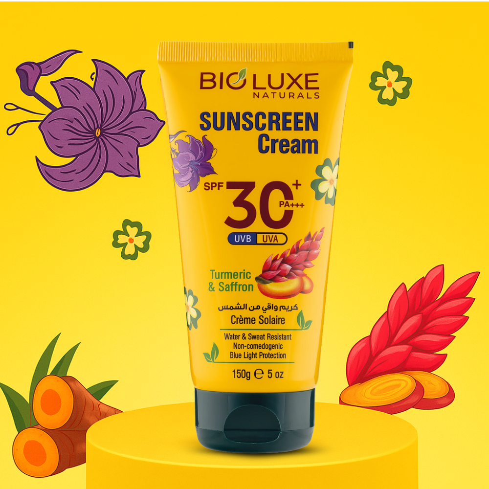 BIOLUXE SPF30+ Turmeric & Saffron Sunscreen offers a balanced blend of protection and care, ideal for daily defense with a natural glow.